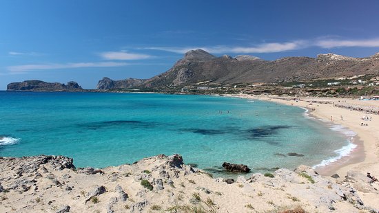 Falassarna: Voorbij Chania vindt u dit lange zandstrand van Kreta. Het heeft een lengte van meer dan drie kilometer. Er komen jaarlijks vele bezoekers en soms kunt u ook hier net als op Balos en Elafonissi licht roze zand tegenkomen.